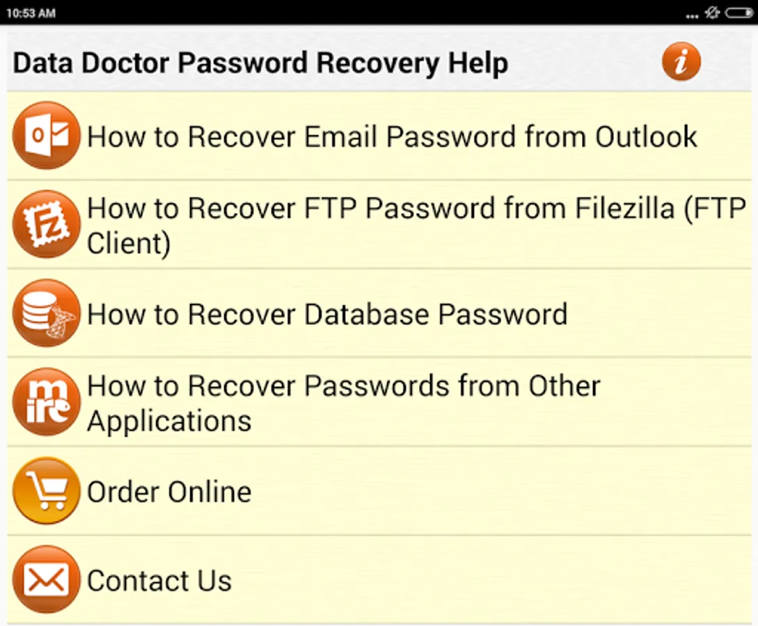 App includes password recovery Help steps and procedures of following Editions of Data Doctor Password Recovery Products: