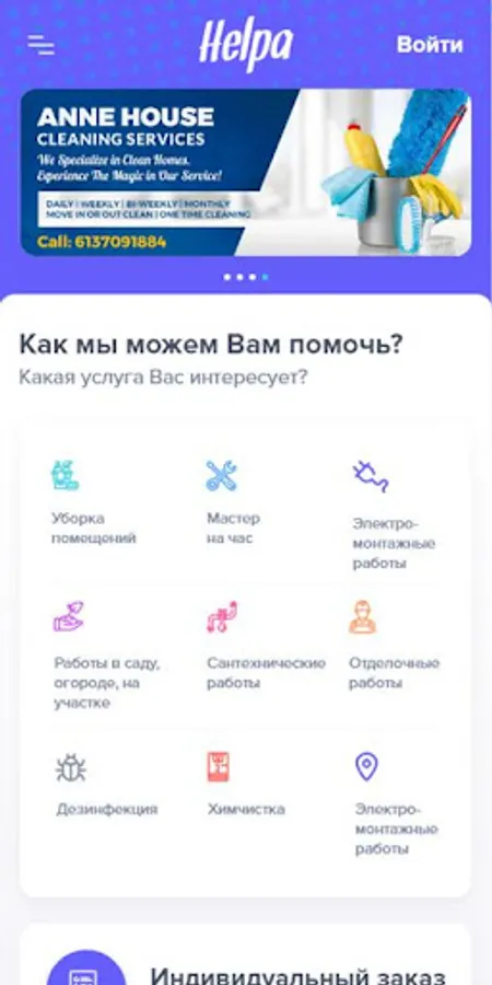 Helpa - Home Services is a convenient way to order the necessary service online directly from the contractor. In the application Helpa - Home Services, everyone can sell and buy any services at competitive prices and with minimal risk. We work with reliable performers in the city of Tashkent and guarantee a refund in case of low quality work. Among the services offered in the Helpa application are: Home services: cleaning (cleaning), dry cleaning, disinsection, repairs, child care, animal care and others.