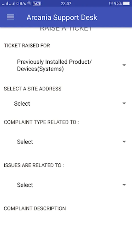 with this application, you can raise a ticket request such as New Installation request, Demo, Site Survey and Complaint lodging etc.