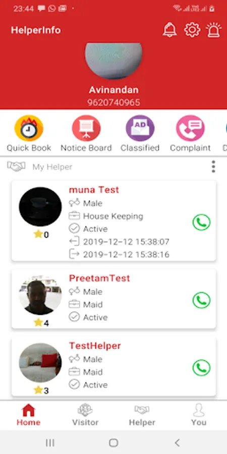 ●Search helper: It's very easy to find a helper for yourself just by clicking search helper you will get the details of all helper coming to the apartment with their contact details and rating. You can easily contact them by clicking on the call button available there.