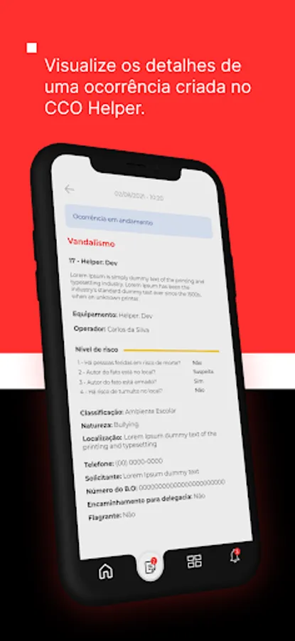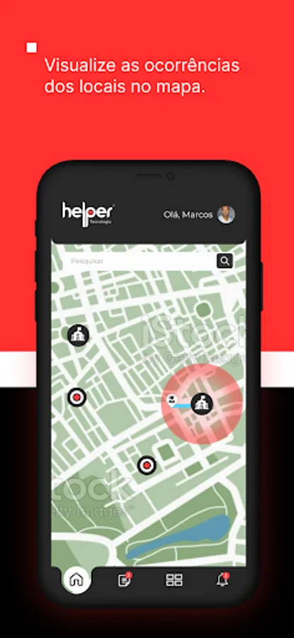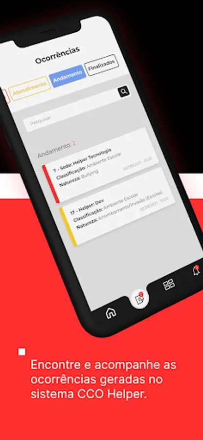 The Agent Helper application allows the agent user to view occurrences close to him, thanks to the capture of his geolocation. The tool is also used to filter and view occurrences associated with your municipality. The application also allows the visualization of the cameras installed in the equipment and facilities at the school in real time and thus generate alerts, record and send audios.
