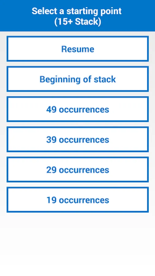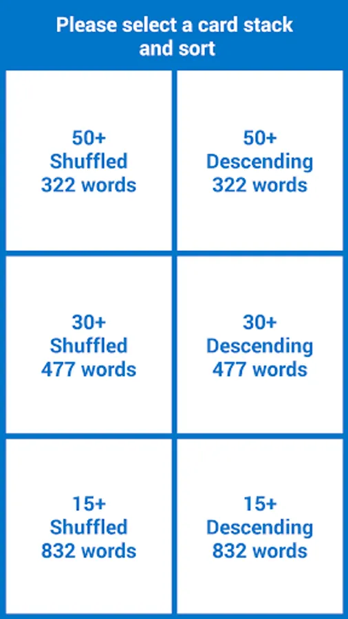 + For descending stacks, select a natural starting point (e.g. start with words with 49 or more occurrences).