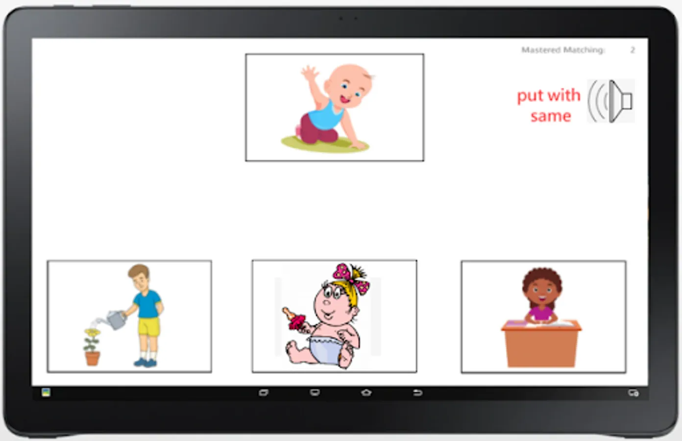 This try for Free app that teaches children of all ages to identify pictures and words using exciting animations to reward the child's progress. The app uses the ABA DTT (Discrete Trial Training) principles to encourage the child to progress through the different images and labels. First, the child has just one choice to make to identify an image by touching the image, then two and so on until s/he masters the image by getting it correct eight times. The app then moves to the next image. You can decide how often to give the rewards. The prompts and labels can be switched on or off. Also the frequency of the rewards can be adjusted depending on the capability of the child. The app features dozens of everyday objects and actions that children comes across. Great start to a child's learning journey!
