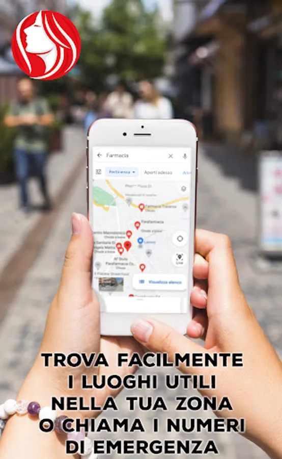 Help and useful services nearby, such as hospitals, pharmacies, police, stations, anti-violence centers, etc...