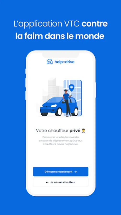 By downloading the application, you contribute to the fight against hunger in the world. Discover Helpndrive, a committed and fair application to book a car with driver throughout France.