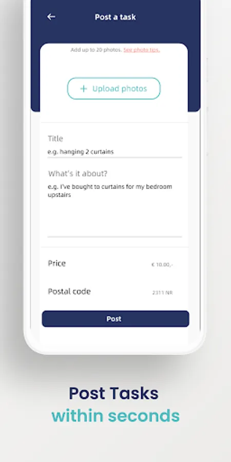 You can easily post the tasks you need help with. Whether you lack the necessary tools, skills, or simply don't have the time, Helprr connects you with Helprrs who are ready to lend a helping hand.