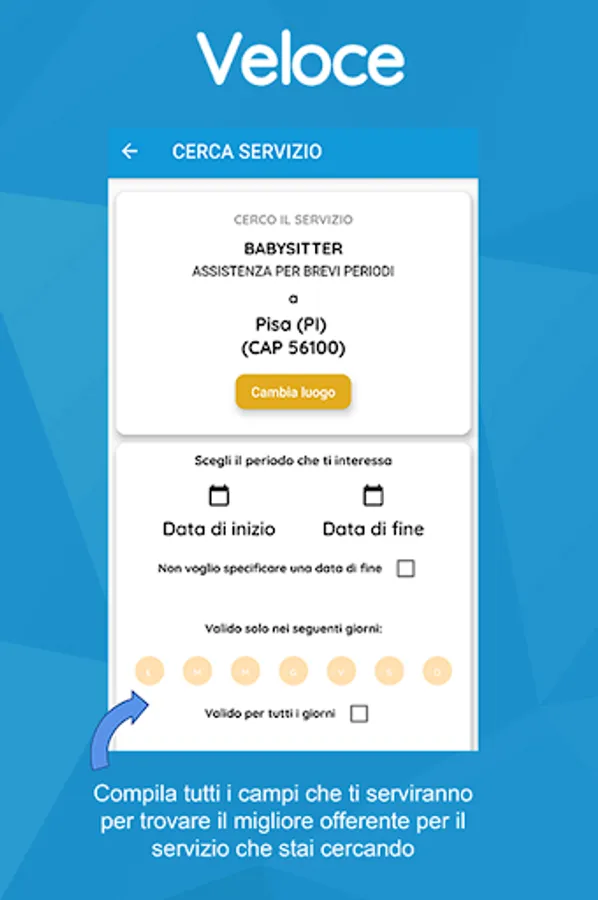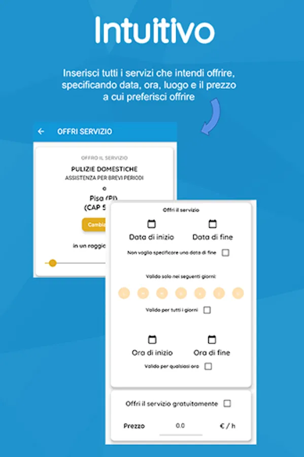 When you are looking for/offer a service HelT allows you to choose every detail, time, day, price, place, giving you maximum flexibility whether it is a long service (e.g. I am looking for a caregiver for the next 12 months) or traits of an extraordinary service (e.g. I'm looking for a lift from via Garibaldi to via Cesare Battisti tomorrow morning between 8:00 and 8:30).