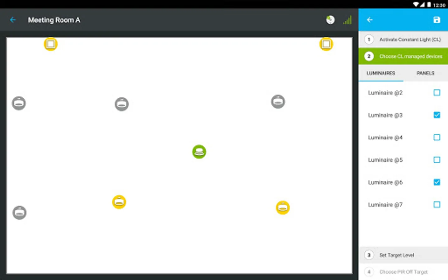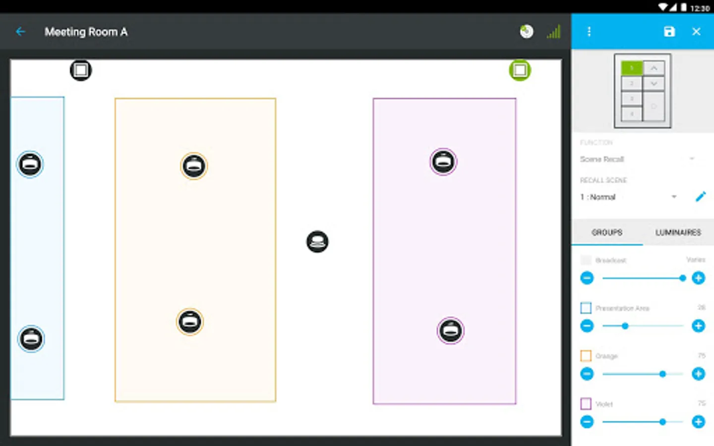 RoomSet automatically finds every addressable Digidim switch, sensor and DALI luminaire.