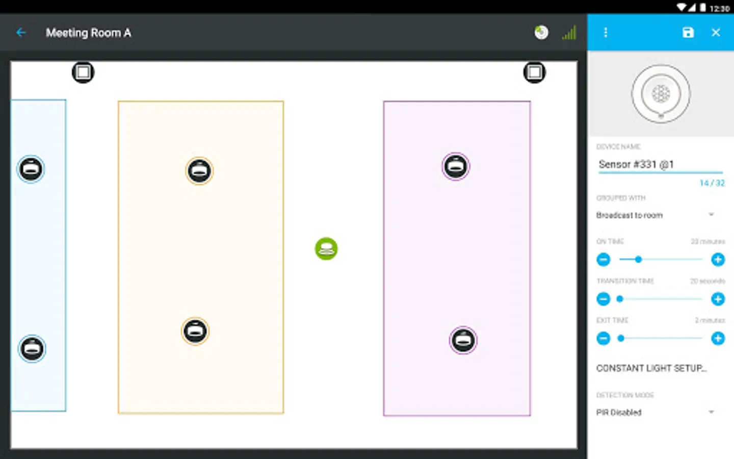 RoomSet configures through Bluetooth, with data stored in each 331 Multisensor.