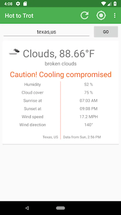 View riding safety & current weather for your location or anywhere in the world with this easy-to-use app. You'll know whether your horse is in danger of overheating with a quick glance.