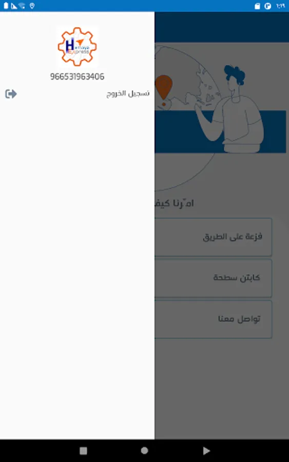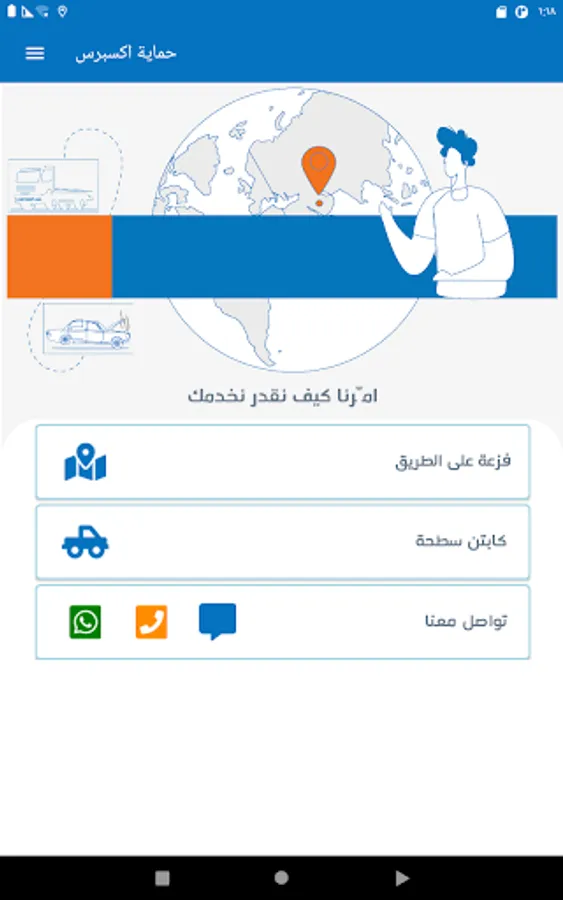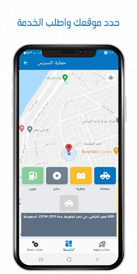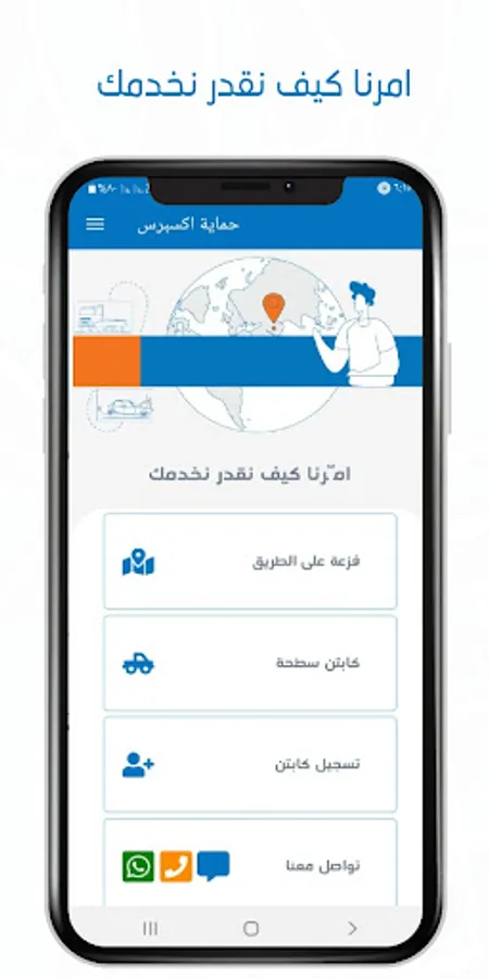 Hemaya Express application from Saudi Hemaya Company for roadside assistance services and includes:
