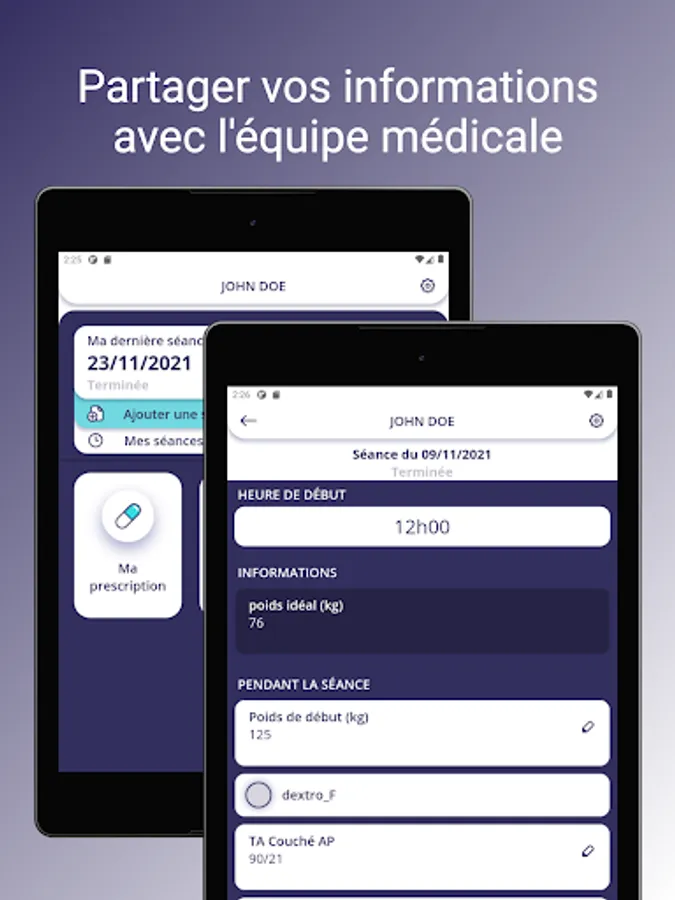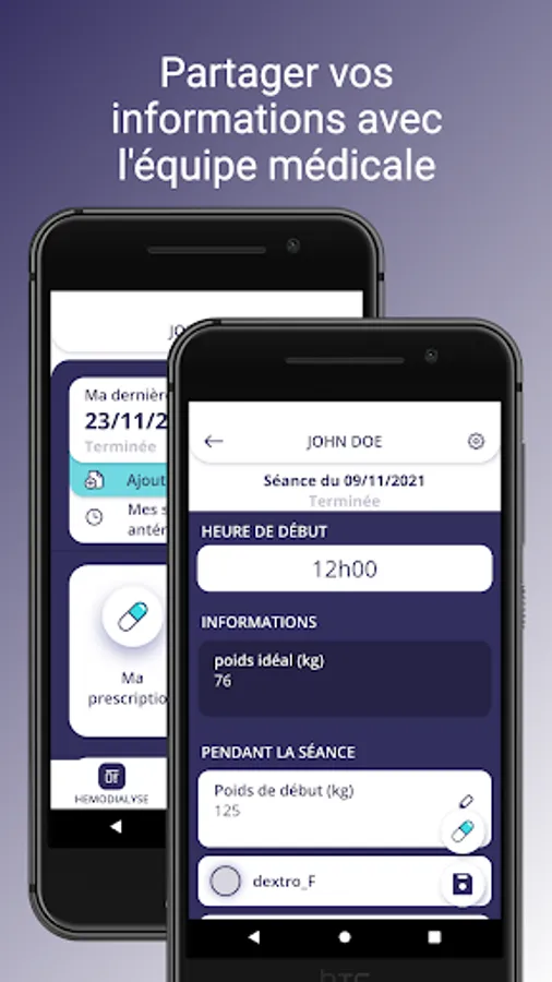 - Sa connexion au dossier de suivi médical. Les données présentes et directement exploitables dans Hemadialyse sont accessibles au patient, à son aidant, ou au personnel soignant assurant sa prise en charge.