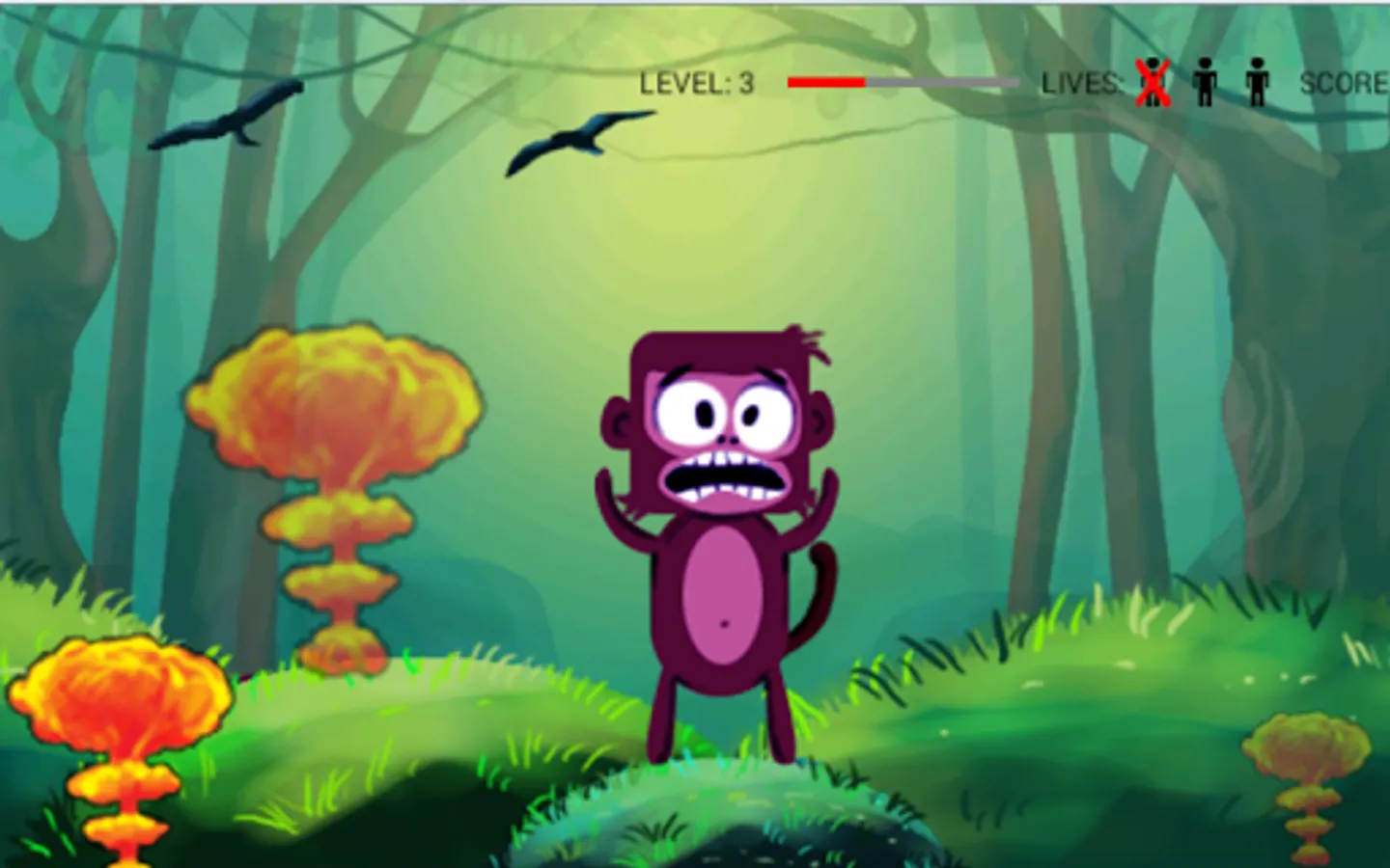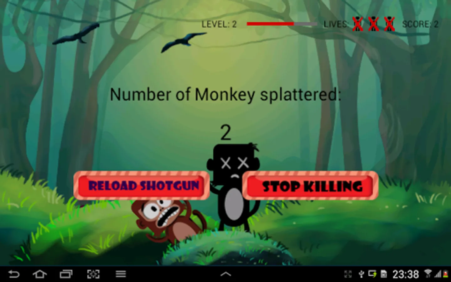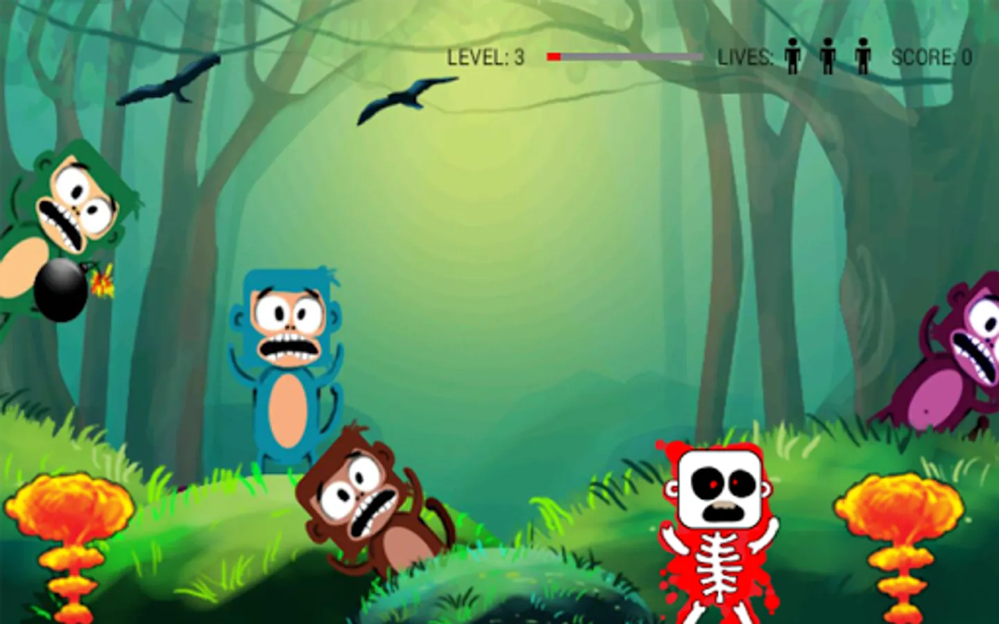 You are having a shotgun into a jungle to hunt the bad monkey and save the good monkey.