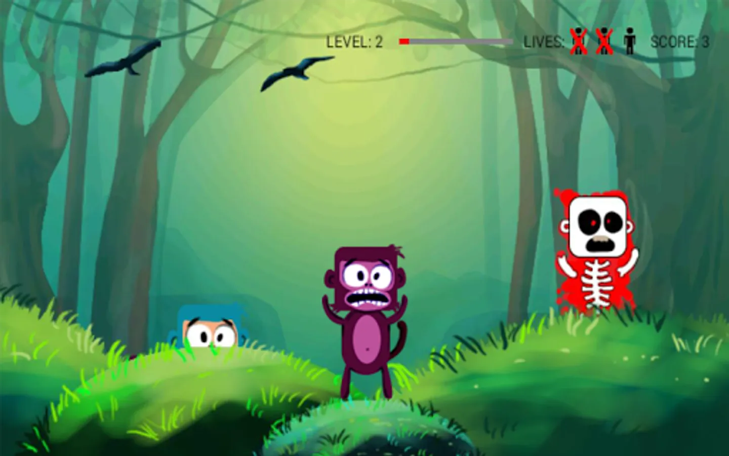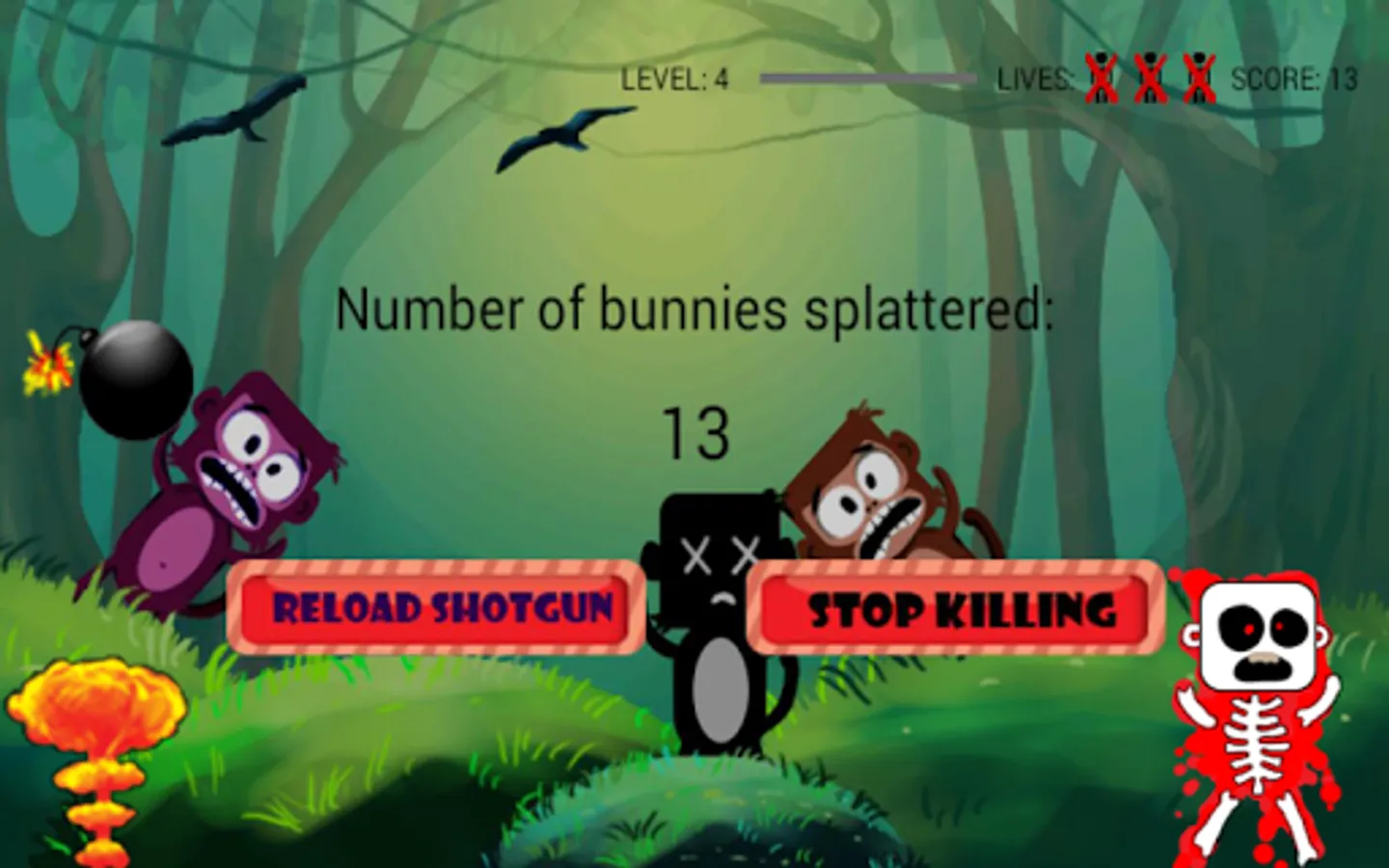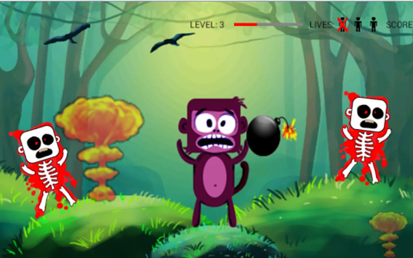 You are having a shotgun into a jungle to hunt the bad monkey and save the good monkey.