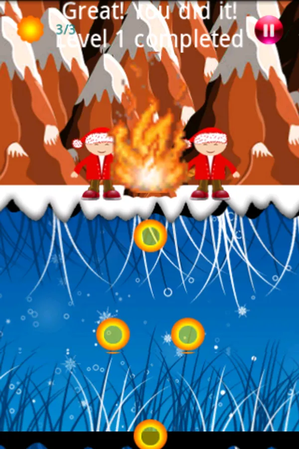 In this game you have you have 2 ski driver and they are connected with a rope. You have to climb in to the hill and go to the top safe position by using the platform of this game. In to the game there is very cold outside, The peace of ice can be fall. You also have to safe those ski driver and climber from those ice. If ice is fallen to them then level will be restarted. After reaching to the top position of the hill you will get the fire that's mean level is completed.