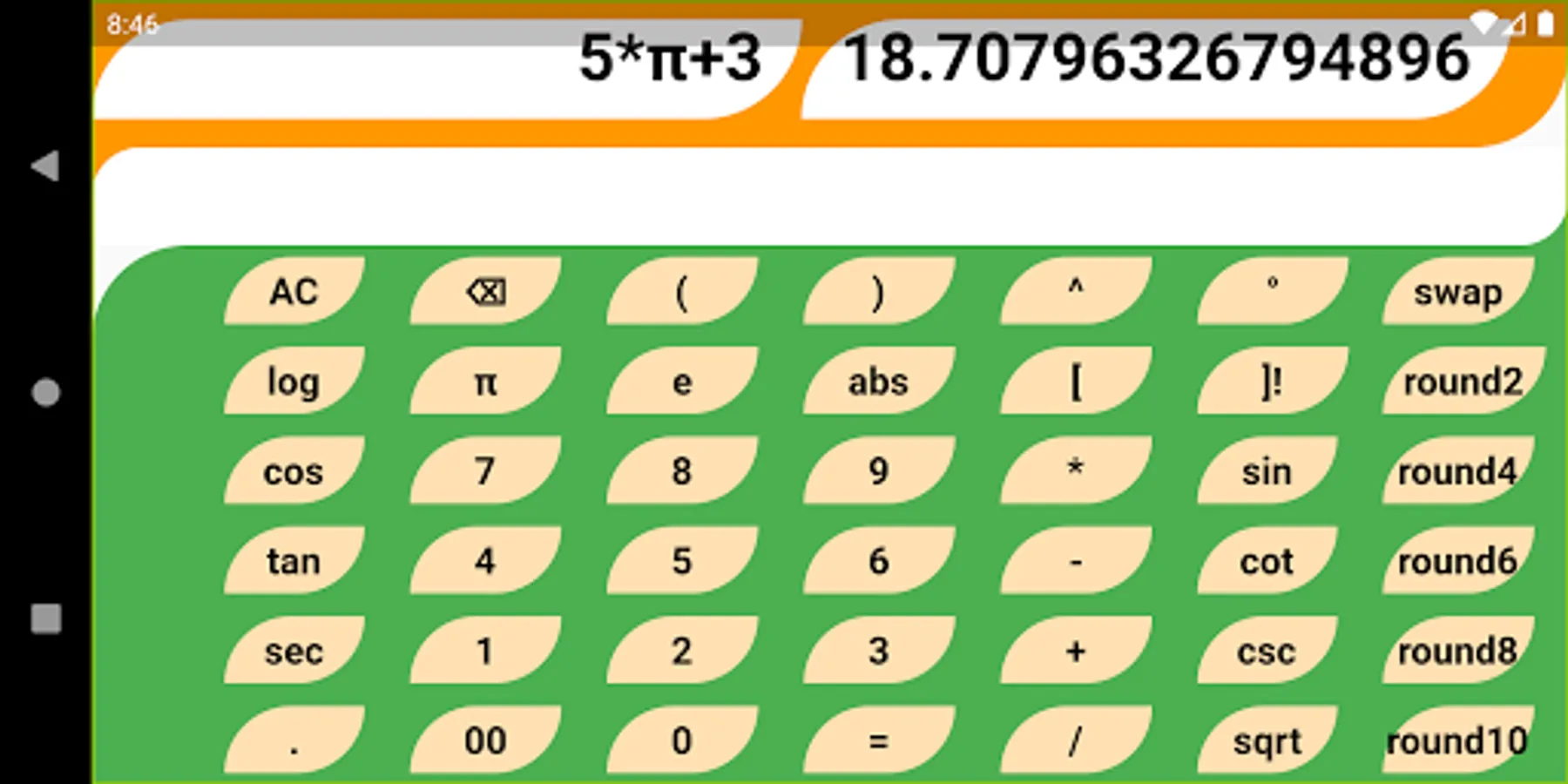 - It has pi and can return absolute value of answer.