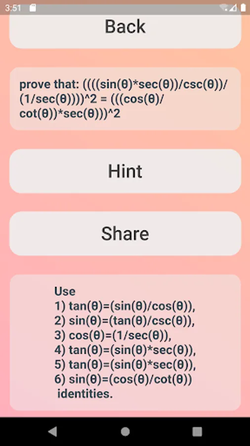 And also there are hints for the person who is solving the question and also it remains hidden until user taps on Hint button on the same page on which the question is presented. This application can help you to not consider trigonometry prove that as your weak point but as your power point in your exams.