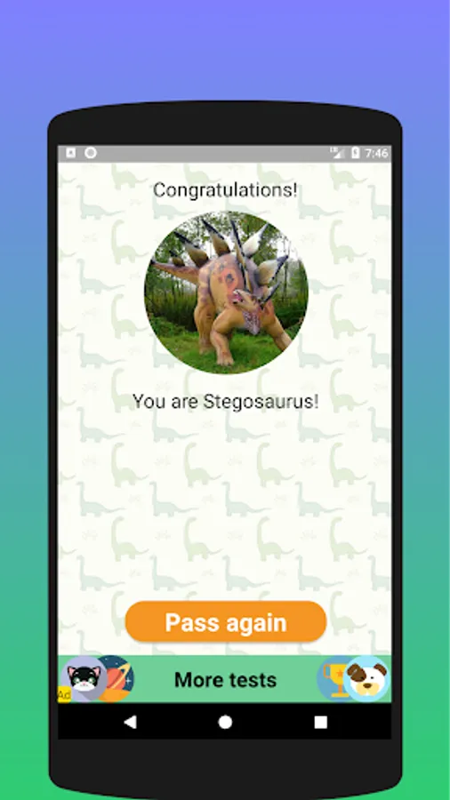 Or you can send this test to your friend or give him a to pass the test on your smartphone to find out which dinosaur is he.