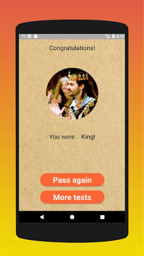 Check your friends and compare the results. Send this test to a friend or give him to pass a test on your smartphone to find out who you were in the past.