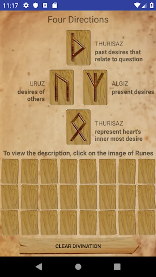 The runic divination can be used to help guide you through problems or issues and help show you what is likely to happen. Runes are known for hinting towards answers, but leaving you to work out the details, which is where intuition is helpful.