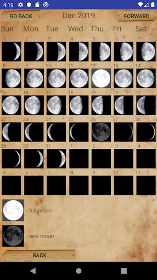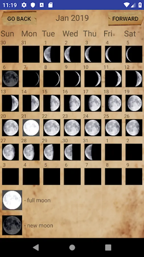 - Moon calendar. Will show the phases of the moon, the new moon, the full moon. Not very important, but best time for divination is the "new moon"