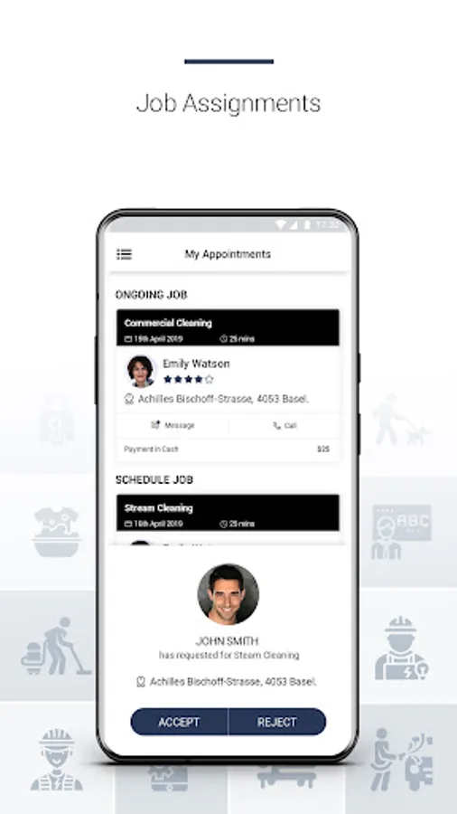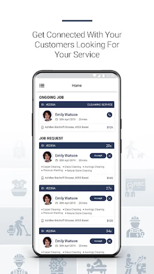 Ce service se compose de deux applications : une pour le client et une pour le prestataire de services. Le prestataire de services s'inscrit sur une application et propose un service (Hemi Pro), et le client s'inscrit sur l'autre application et trouve les services dont il a besoin (Hemi).
