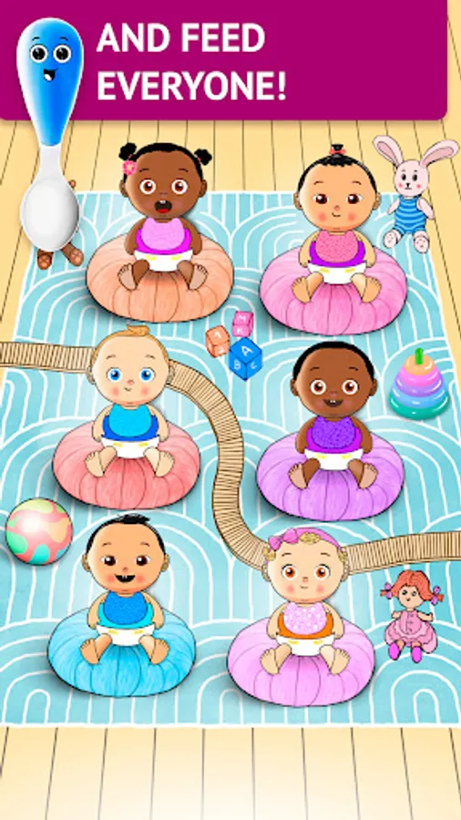 - It’s a baby bum: Choose your cute baby to feeding and to care for. Get up kids, food is ready, don’t be hungry!