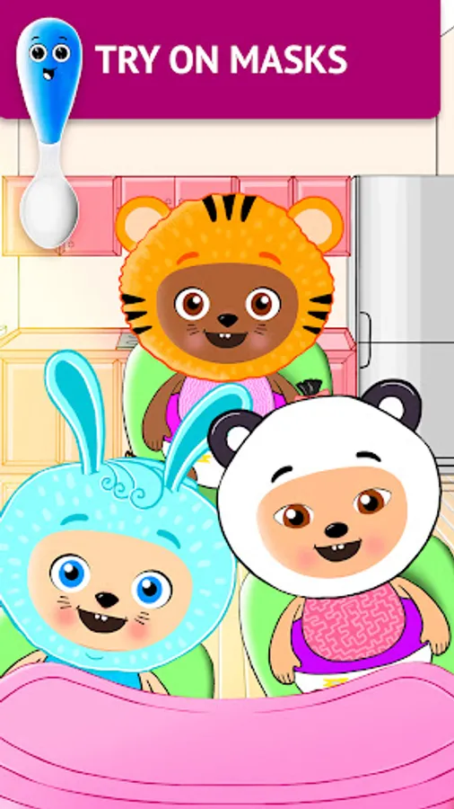- Wear mommy newborn baby in baby panda, tiger or a rabbit mask. It is mini zoo baby center where you can find baby animal to feed.