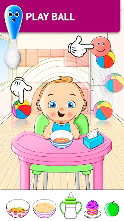 - Baby feeding is better with fun: eat and play the ball. Child care games and caring games offline don't have to be boring!