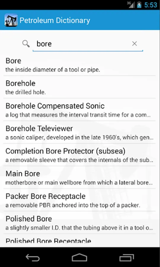 Petroleum dictionary is an offline dictionary. It contains almost every popular words in petroleum engineering. It is suitable not only for student of petroleum engineering department, but also for those who are working in oil field. Some terms are also related to geology and geophysics which make this apps is also suitable for geologists and geophysicists.