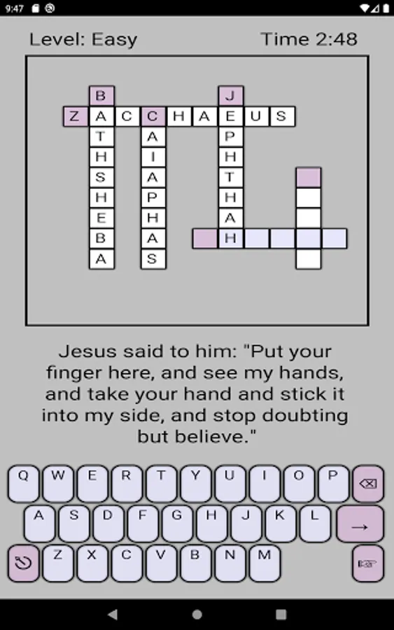 The Bible Character Crossword Game. Unlimited crosswords, as each one is generated as you tap the Play button.