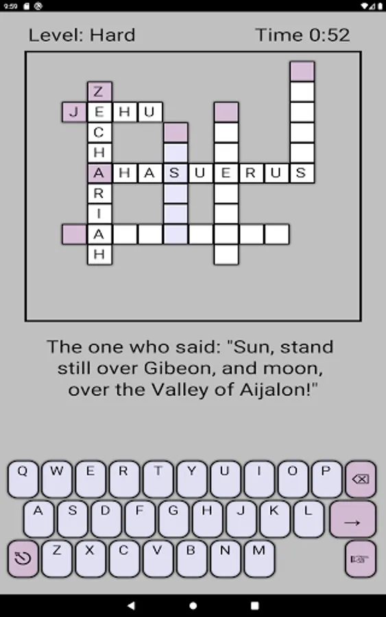 Every crossword is generated and there are three levels of difficulty with the characters and hints. When your memory is failing you, use the reference (pointing hand) button to lookup the Bible verse or pages in the Insight-book.