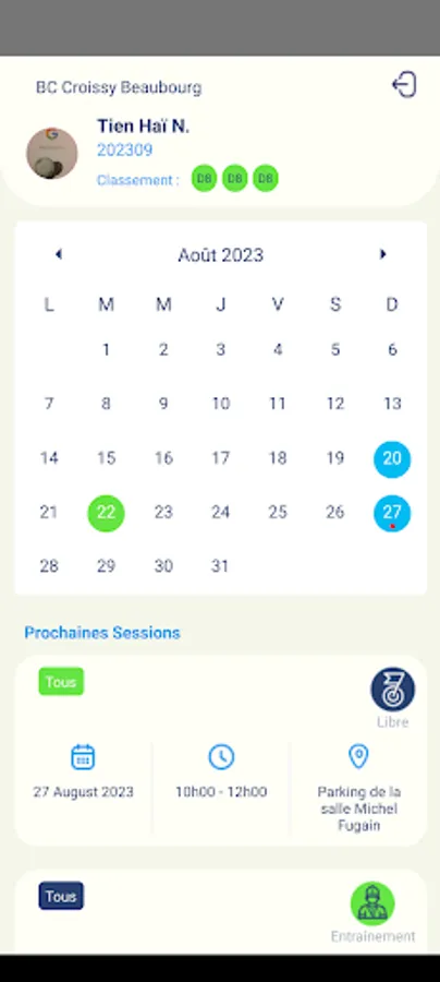 Interclub section, easily manage the composition of your team thanks to the list of attendees, quickly and simply view the calendar of meetings, place, date and time. See and share the composition of the team but also inform live the score of the matches, thus visible to the whole club from anywhere.