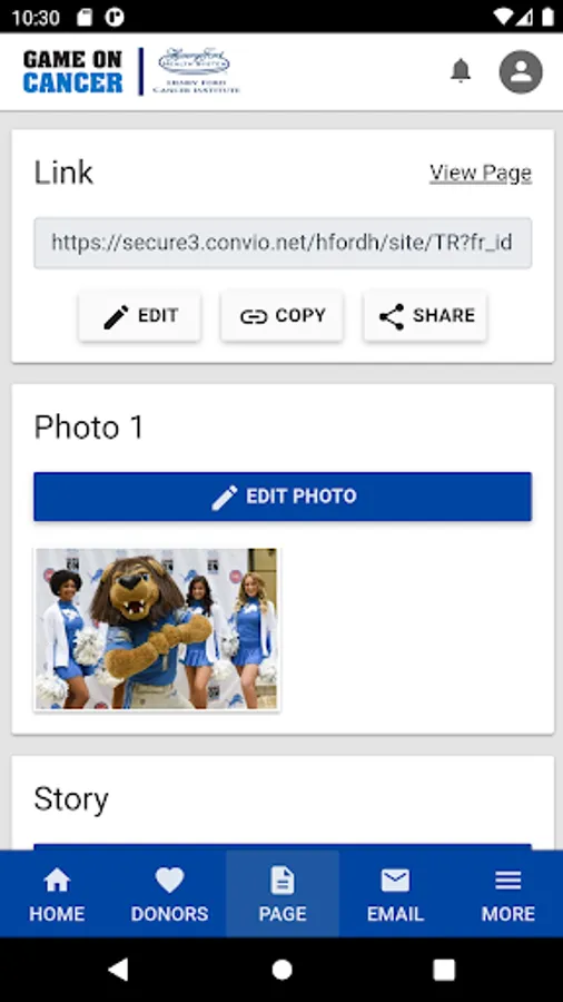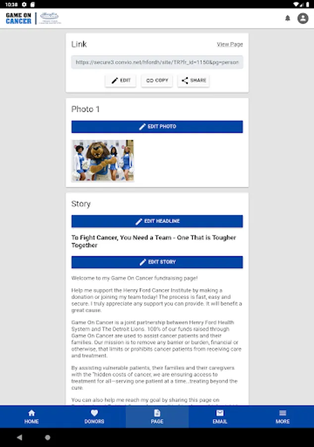 * Update your fundraising page with your story and/or a photo using a photo stored on your device