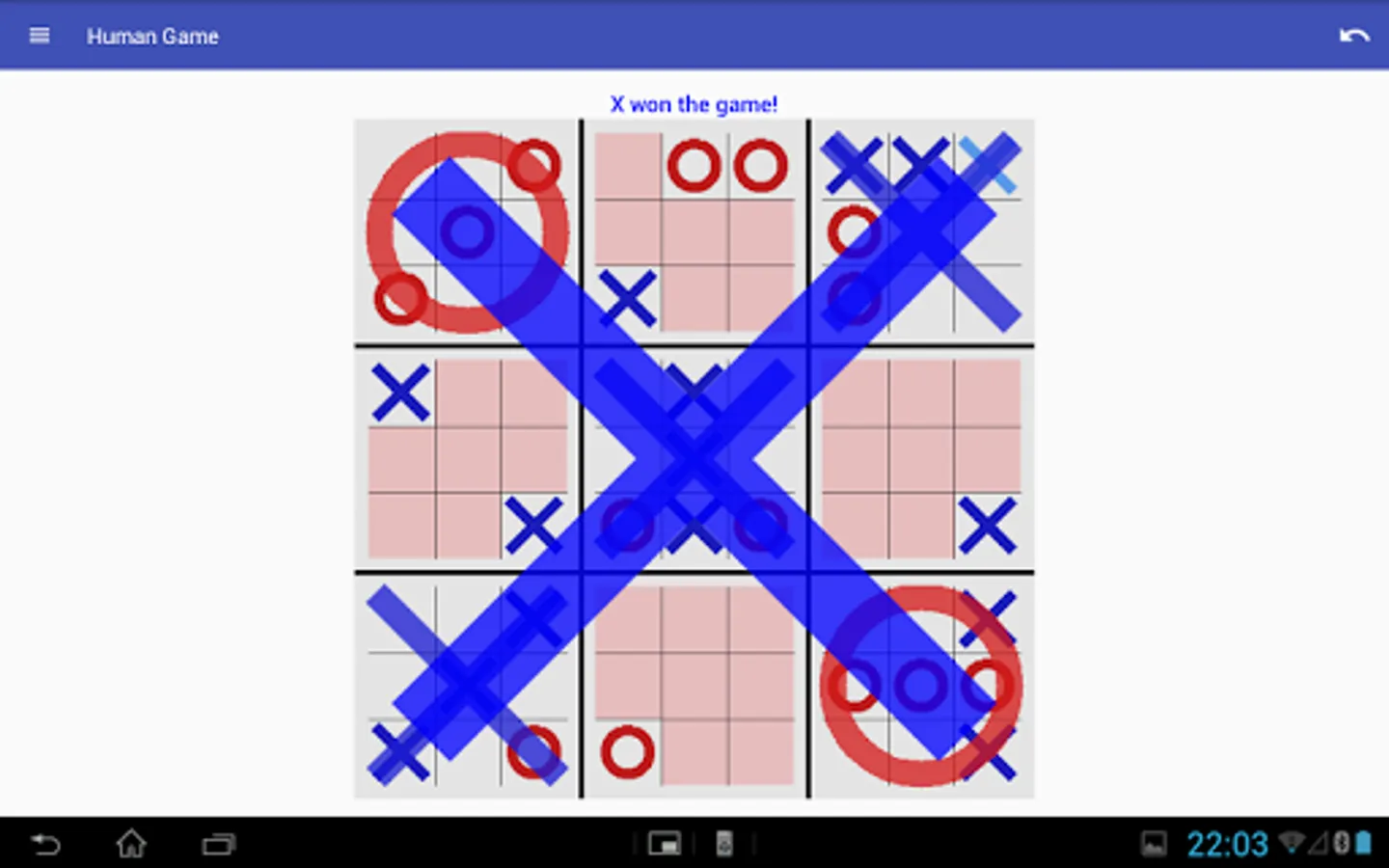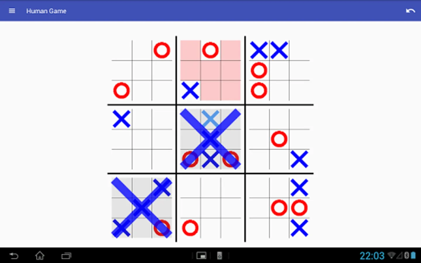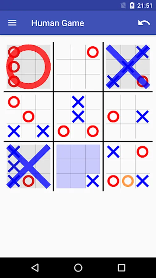 In Super Tic Tac Toe (also known as Ultimate Tic Tac Toe or Meta TTT) each square of the traditional board contains a smaller tic tac toe board. Two players take turns playing the smaller boards until one of them wins three in a row. This game takes Tic Tac Toe to a whole new level! Unlike the traditional game there is no strategy that allows you to always win or tie.