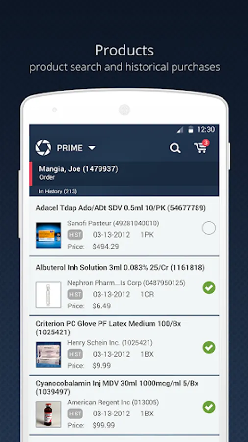The Henry Schein Portal app is a mobile ordering application available to our web users. It allows for easy and quick ordering, with access to search for products, view customer information and historical purchases, and use our integrated bar code scanner to add items to the Order. A product detail screen provides a product image, an estimated delivery date, and inventory availability. It is also integrated with Coach+ to provide a customer information overview.