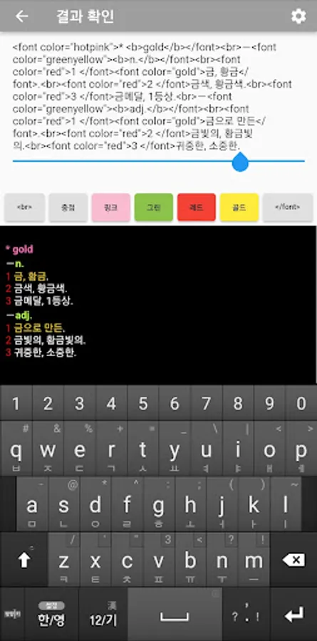 This app was created to make it easy to organize the meaning of words in vocabulary apps that can be displayed in HTML code, such as FlashCard Deluxe.
