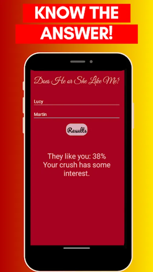 Enjoy a Playful Experience: Uncover the excitement of knowing whether your crush feels the same way. Our app offers a fun way to gauge potential romantic interest.