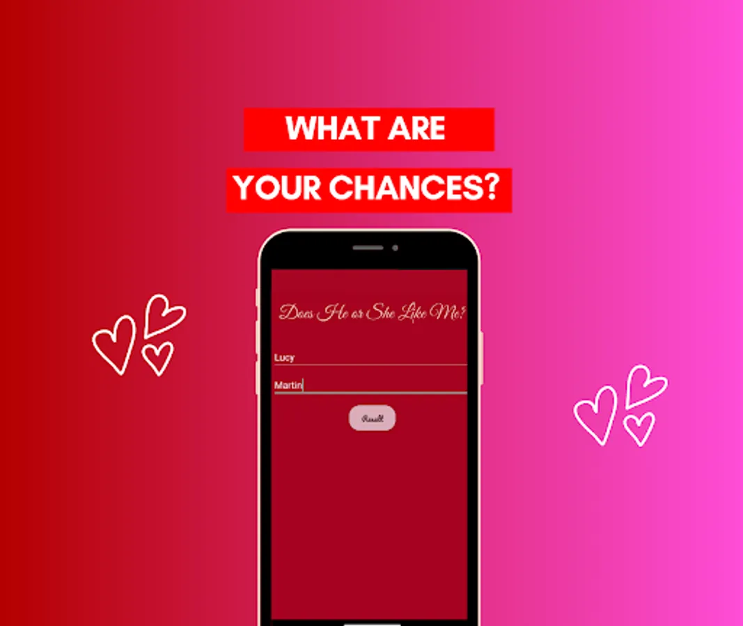 Are you curious to know if your crush likes you back? "Does He or She Like Me?" is here to provide some insights! Discover the possibility of mutual interest with this fun and lighthearted app.