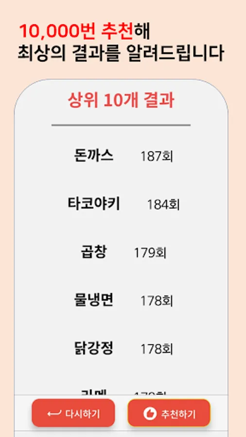 -We will show you the most recommended food by selecting all foods 10,000 times.