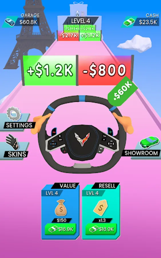 In Steering wheel evolution, you'll be able to collect the most insane steering wheels out there and build yourself an amazing race car collection. Get the best steering wheels, customize the cars, drive to evolve and get the supercar collection at highest level! If you can handle them all good, If not, you can always put them on sale!