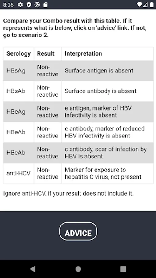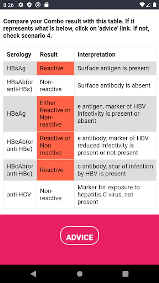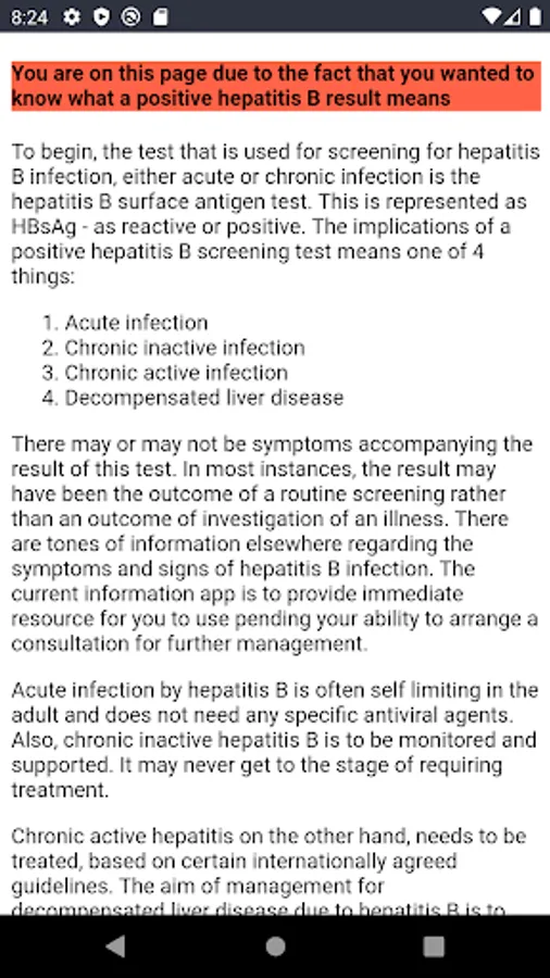 It is intended for the user to find basic information on hepatitis B test outcomes and to be able to understand the results of their serology.