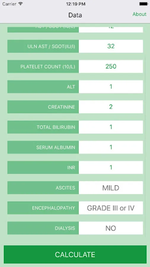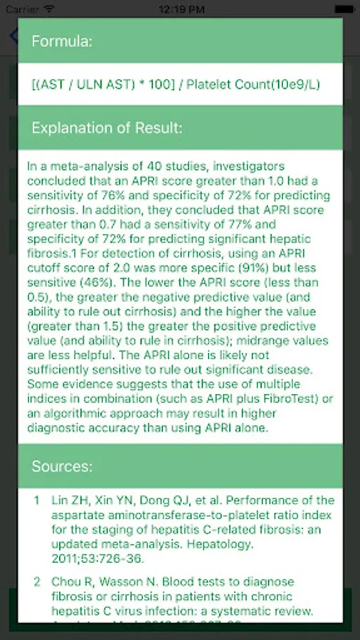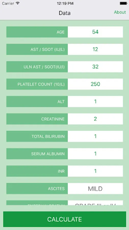 The calculators in this application are designed to help you with the evaluation of hepatitis C patients. You will have to input the necessary patient information only once, and if the information is complete it will give you the simultaneous scores for the following calculations: