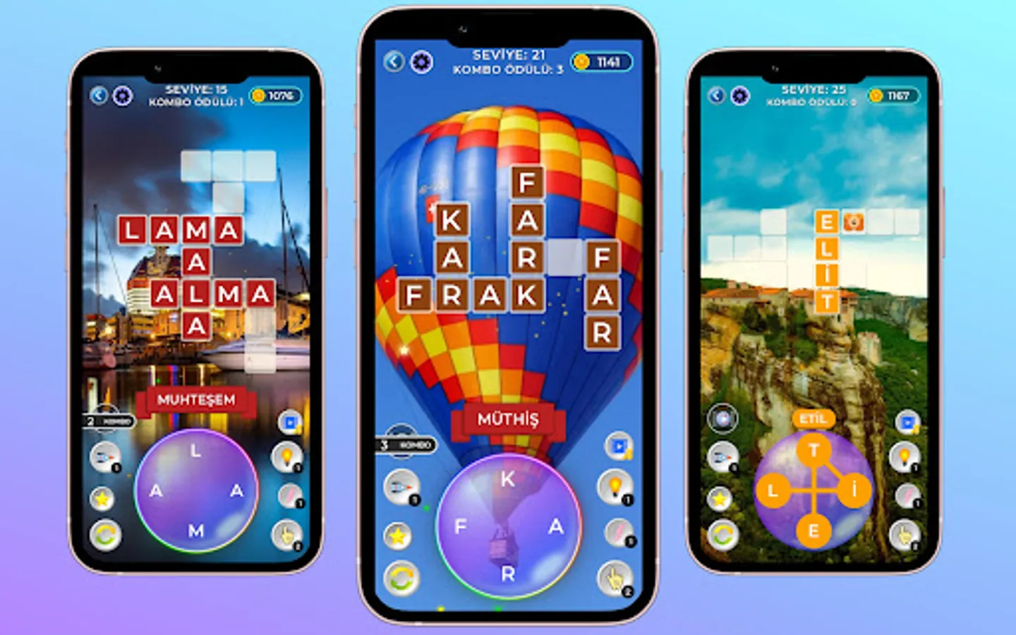 Kelimeler türetirken zorlanırsanız joker kullanabilirsin ve ipucular yardımıyla kelimeleri daha kolay bulabilirsin. Kaliteli görseller eşliğinde sözcük bulmacanın zevkini yaşayacaksınız.