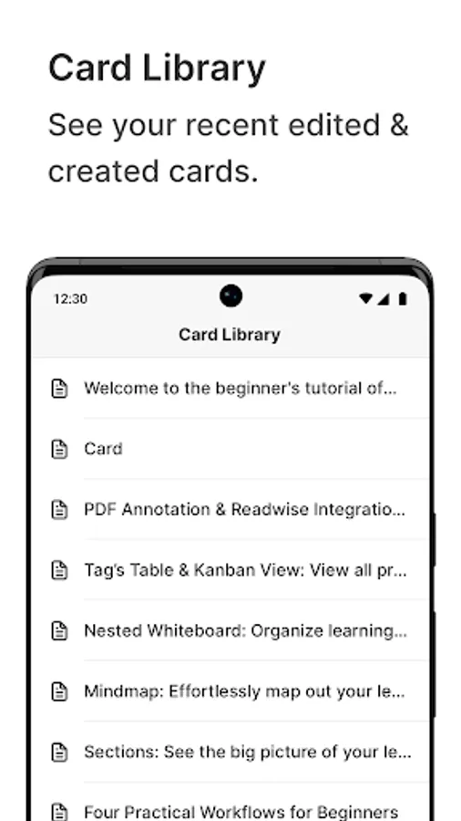 Heptabase is a visual note-taking app that helps you learn complex topics. The mobile app provides full access to all your cards and journals, and allows you to read all your whiteboards.