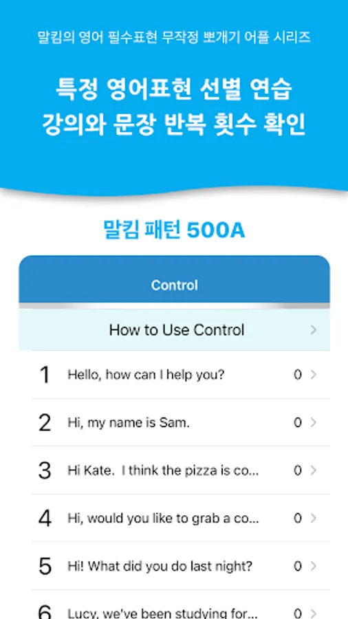 Pattern 500 and Application 500 are composed of 1000 skeleton sentences and 500 application expressions that can be used most in real environment.