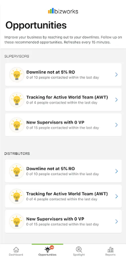 The new BizWorks Plus Mobile App will help track, manage and grow downline business by providing near real-time business insights, opportunities and reports to enable timely and targeted actions.