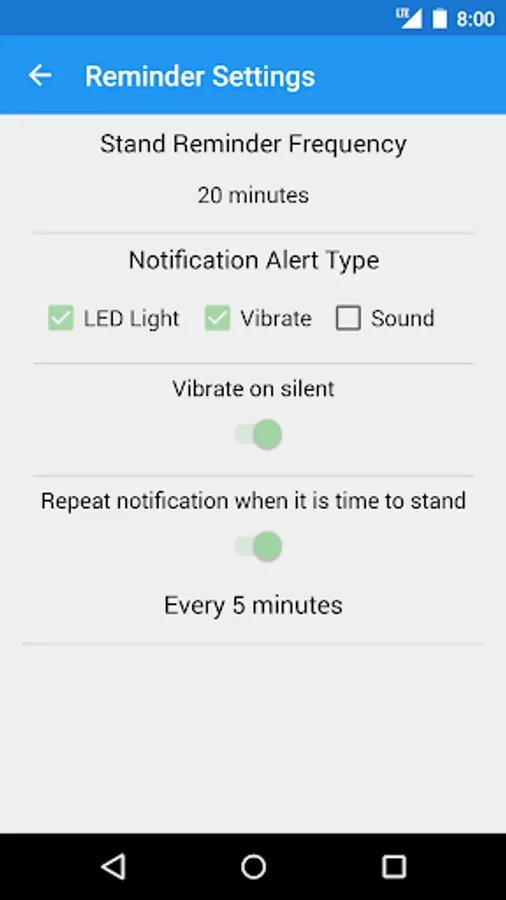 • Intelligent reminders only alert you when you are truly inactive using the built in step tracker (Pro)