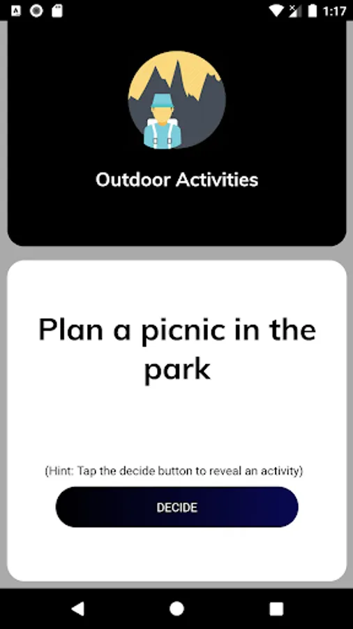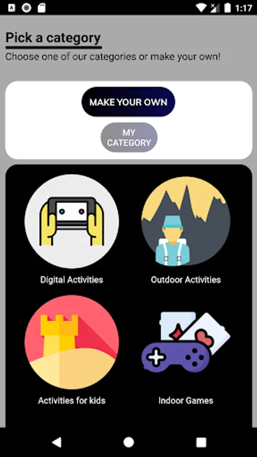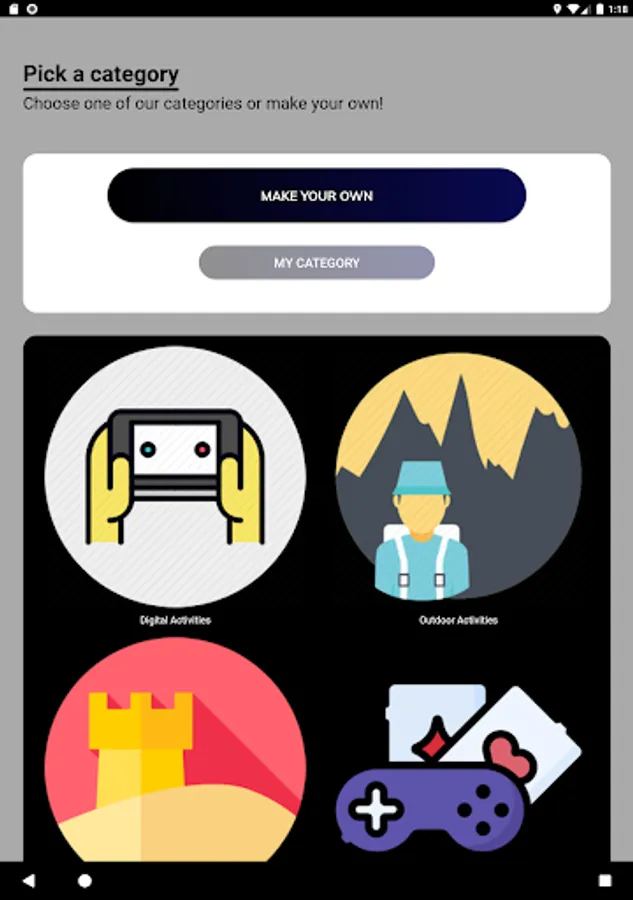 You can also make your own category and fill it with activities and hit the decide button and we'll pick out a random activity for you.