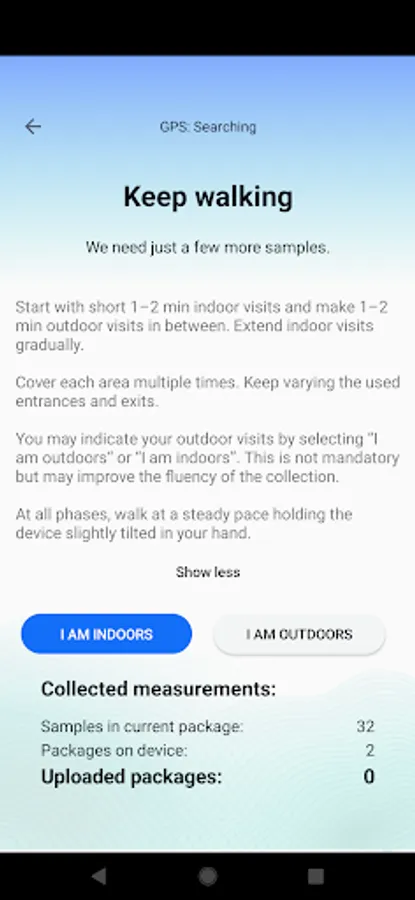 HERE Radio Mapper application is used to gather geo-referenced signal identification data for maintaining HERE Network Positioning service. The application is easy to use since it instructs user on the go. It can be used both outdoors and indoors.